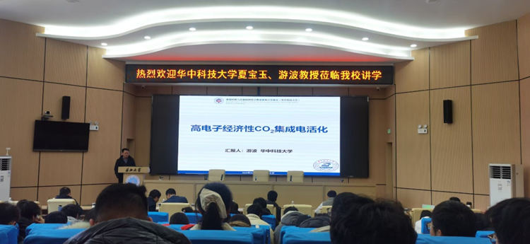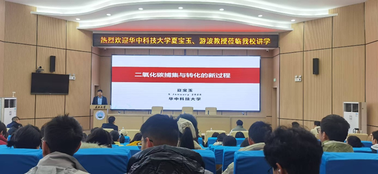 202619日上午,华中科技大学夏宝玉、游波两位教授在东校区11教学术报告厅为师生带来了两场聚焦CO2资源化利用的高水平学术报告。本次报告会由学院赖璐院长主持,肖围副院长、谷惠文副院长、部分青年教师、学院研究生及储能科学与工程专业本科生参加了此次活动。