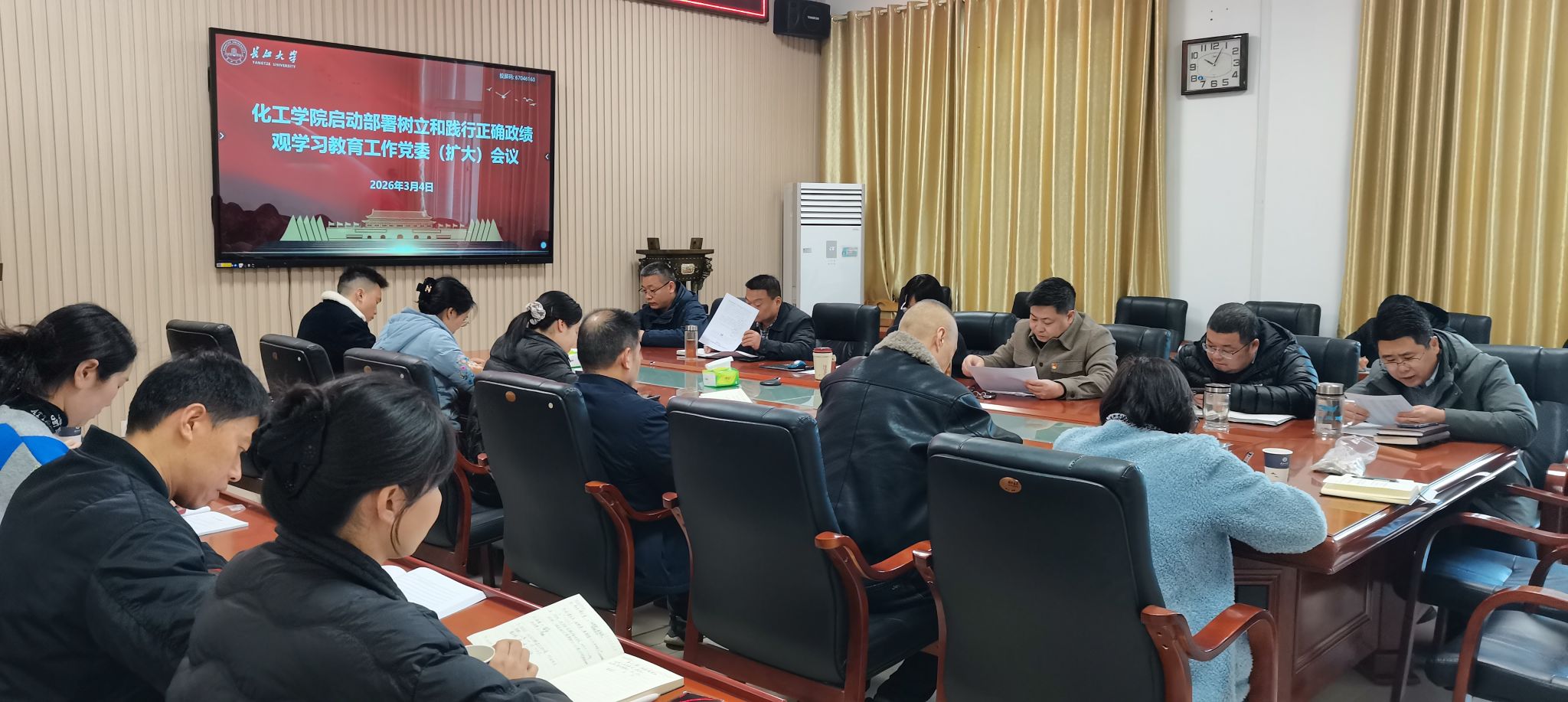 在14教西303会议室召开党委(扩大)会议。专题传达上级精神,全面启动学院学习教育工作。学院领导班子成员、党委委员、各党支部书记及管理岗人员参加会议,会议由学院党委书记王丽主持。