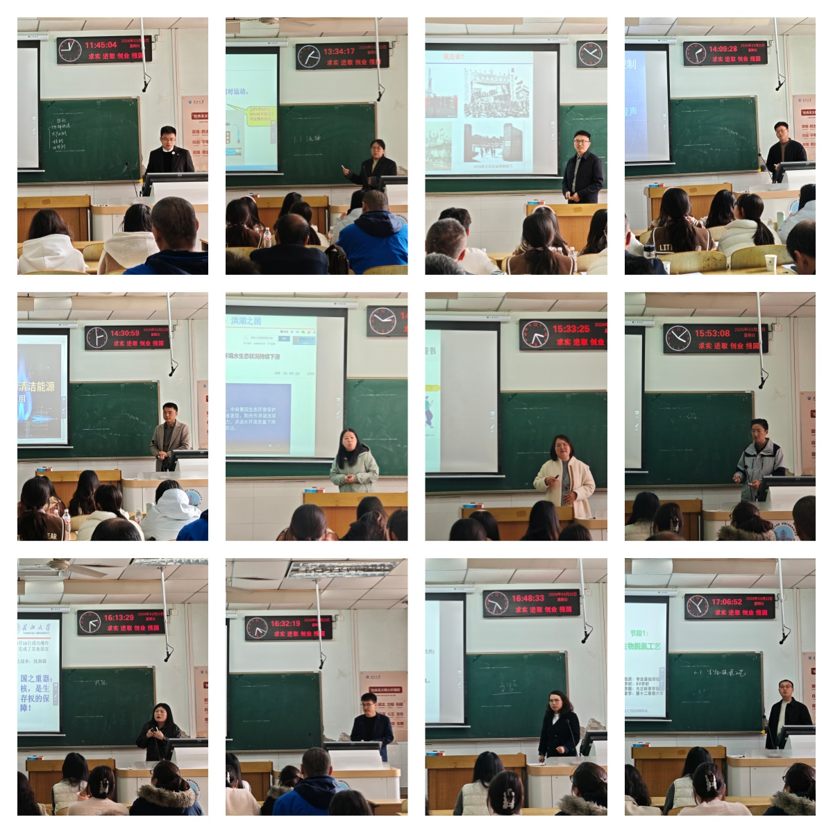 比赛中,23位参赛教师依次进行限时教学展示。他们思路清晰、重点突出,教学方法灵活,多媒体与板书相得益彰,展现了扎实的专业功底和良好的精神风貌。由7位多次获长江大学教学质量优秀奖的教学名师组成评审委员会,从教学内容、教学组织、语言教态、教学特色等方面进行现场点评与打分。