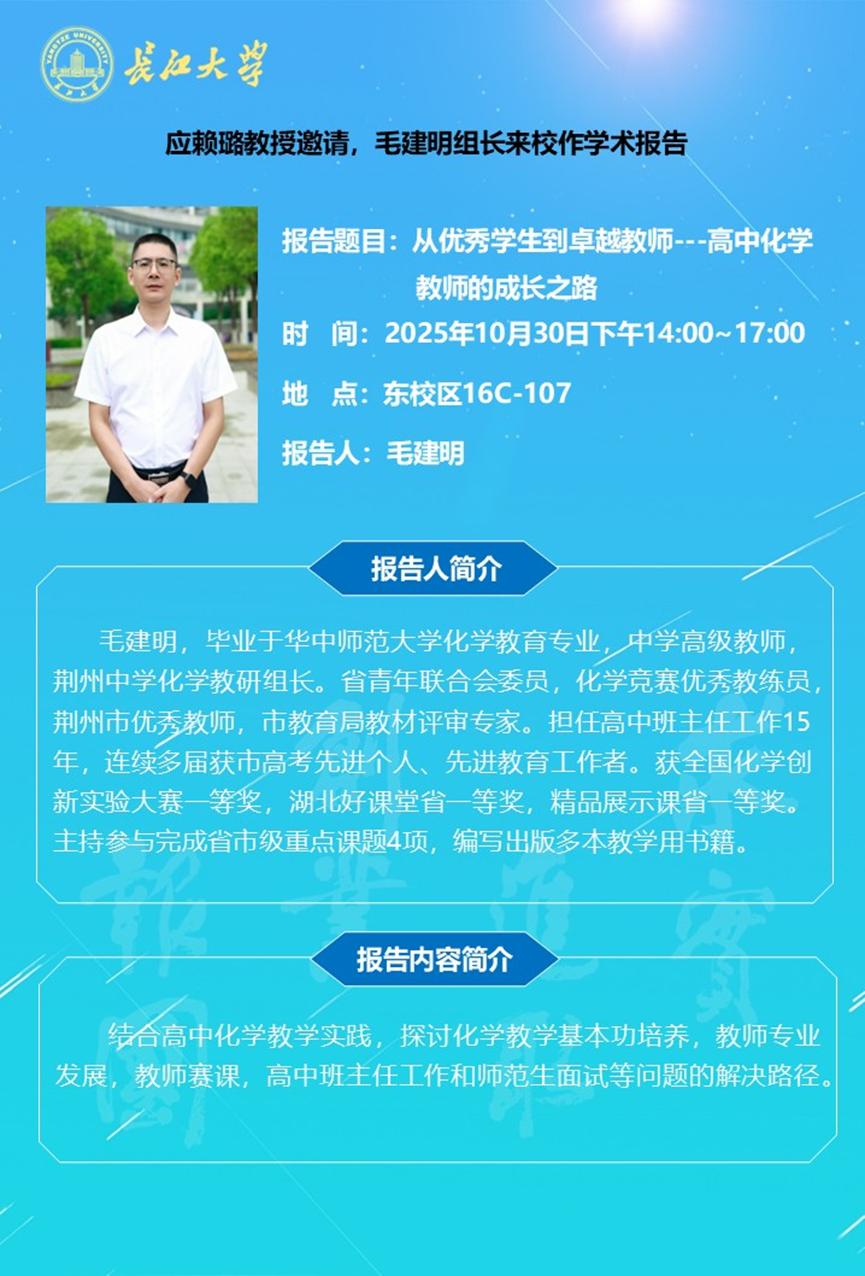 长江化工讲坛:从优秀学生到卓越教师---高中化学教师的成长之路