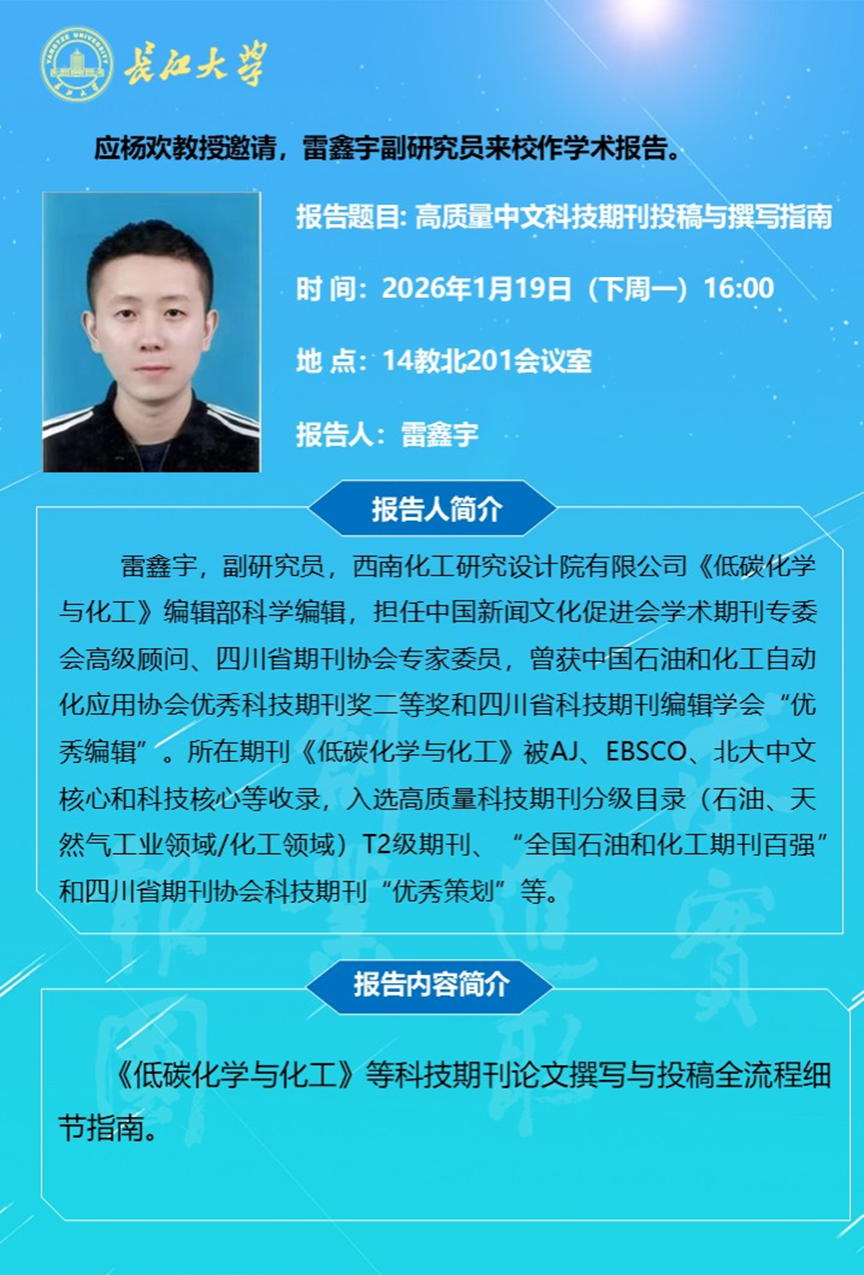 长江化工讲坛:高质量中文科技期刊投稿与撰写指南